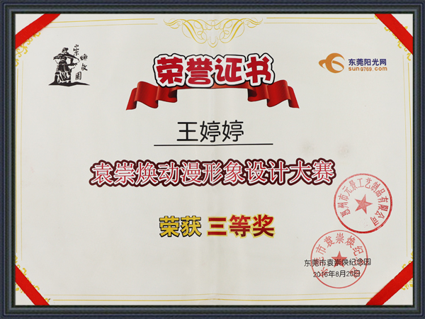 動漫形象設(shè)計(jì)作品榮獲《袁崇煥動漫形象設(shè)計(jì)大賽》三等獎。